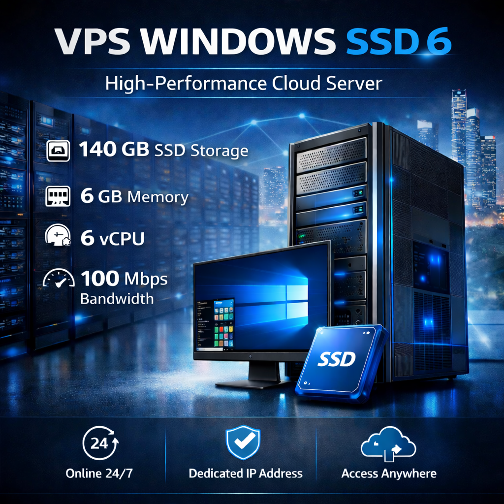 VPS Windows SSD 6 adalah paket server virtual dengan performa besar dan stabil, cocok untuk bisnis dengan banyak user, banyak cabang, atau penggunaan aplikasi yang lebih berat.